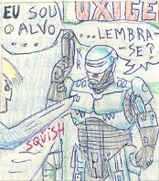 Alguns comentários sobre esta história: * O tanque de oxigênio não substitui o nitrogênio líquido do filme. Era só pra ganhar tempo. Francamente até hoje não sei se ele resfria tanto assim. * Aqui o explosivo da perna esquerda que o RoboCop ganhou na série de TV. |