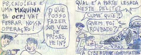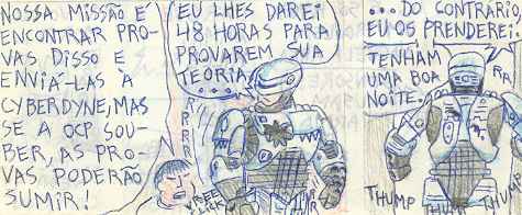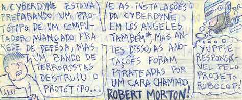 Alguns comentários sobre esta história: * Aqui eu costuro a história dos dois filmes. * O ataque terrorista é aquela cena da explosão do prédio do filme "O Exterminador do Futuro 2". * Robert (Bobby) Morton é o papel de Miguel Ferrer em "RoboCop 1"... "-Tive que matar Bobby porque ele cometeu um erro, agora é hora de matar o erro!" |