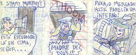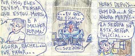 Alguns comentários sobre esta história: * O nome da esposa do Murphy nos filmes é "Ellen", mas no seriado mudaram o nome para "Nancy". * Um clichê típico de filme americano: a empregada latina que mal fala o idioma local. * Este carro preto foi minha tentativa de desenhar a "Super Máquina" ... nada mal para um carro usado! ^^ |