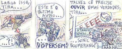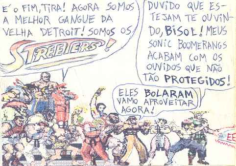 Alguns comentários sobre esta história: * Ok! Ok! Podem me xingar pelas minhas referências! Mas duelos até a morte eu só aceito se for com robôs gigantes! :p * "Bolar" é uma gíria carioca de fliperama. É quando o personagem fica tonto. * Na época, Street Fighter 2 ainda fazia um bruta sucesso e o filme do Jean Claude Van Damme ainda era recente. |