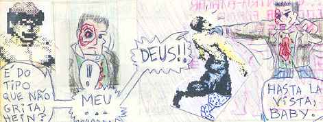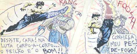 Alguns comentários sobre esta história: * O Fei Long é um bom personagem, mas eu não podia perder a chance de fazer alguma brincadeira com o personagem favorito do meu bom amigo Mauro Cesar! ^_^ * Este deve ter sido o episódio que mais usei os desenhos que eu fazia na margem do caderno durante as aulas! |