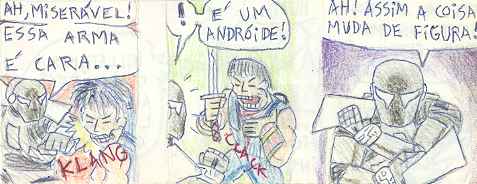 Alguns comentários sobre esta história: * Fala sério! Você realmente achou que eu esqueceria de colocar Otomo na história? * Agora a coleção está completa: robôs, ciborgues pseudo humanos, ciborgues pseudo robóticos, humanos com próteses biônicas... e um andróide! * No filme, Otomo não fala. Mas aqui eu coloquei as frases e gritos do jogo "RoboCop 3D" para PC. |