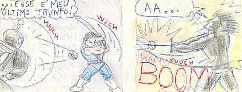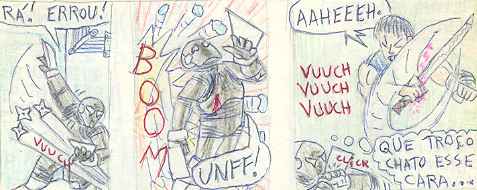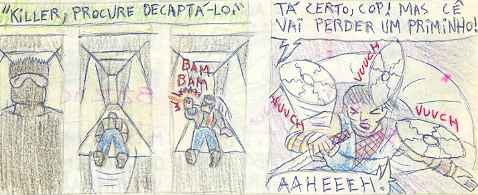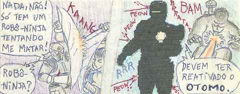 Alguns comentários sobre esta história: * Me inspirei no filme "O Último Grande Herói" quando desenhei esta cena no Exterminador levantando depois do tiro. * Otomo não chegou a usar shurikens exposivos no filme, mas achei que seria um detalhe interessante. |