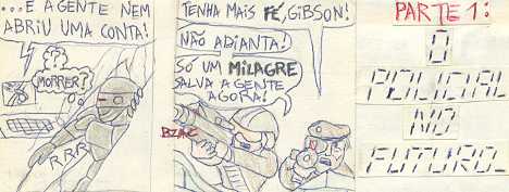 Escrevi um roteiro. Levei 1ano pra fazer e 2 pra fazer a revista final, que ficou pronta em 96. (Só deu pra fazer nas horas vagas. Eu estava estudando no SENAI na época.) Inrônicamente consegui achar a revista original numa gibiteria de revistas importadas (a extinta "Gotham City") alguns meses depois e juntei um dinheiro que eu não tinha pra comprá-la! Mas o roteiro de Frank Miller me decepcionou um pouco. Haviam muitas idéias boas que não puderam ser usadas por questões de contrato... |