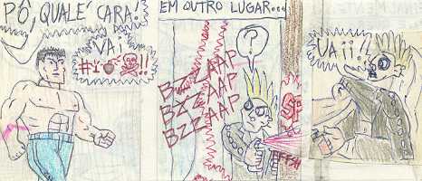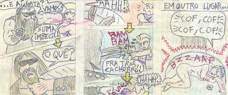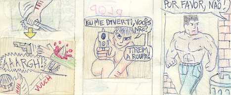 Alguns comentários sobre esta história: * A pichação "SP" significa "Splat Punks" ... uma das gangues de bandidos do "RoboCop 3". * A mulher vestida de roxo é uma das inimigas do jogo "Double Dragon 2". * Os palavrões cifrados são influência da "Turma da Mônica", mas também acho de melhor gosto insinuar os palavrões do que escrevê-los. |