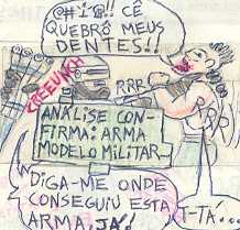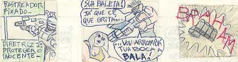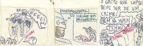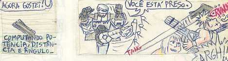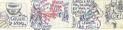 Alguns comentários sobre esta história: * Esse "EEE" é influência de gibi americano! Ninguém no Brasil grita "EEE"... mas se você passar a pronúncia pro inglês, vira algo como "AAAHH"! * Esse punk de viseira é uma referência ao "Batman - Cavaleiro das Trevas" de Frank Miller. |