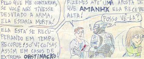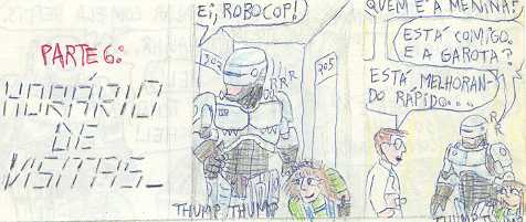 Alguns comentários sobre esta história: * Achou esquisito o título só aparecer agora? É que eu só lembrei nessa hora mesmo! Pior foi o filme "RoboCop 2", em que o título só vem no fim, quando sobem os créditos do filme! * "TJ Laser" é o seriado favorito do filho de Murphy, como aparece no primeiro filme. Eu havia esquecido de colocar aquele programa onde o cara diz "-Eu pago um dólar por isso!" |